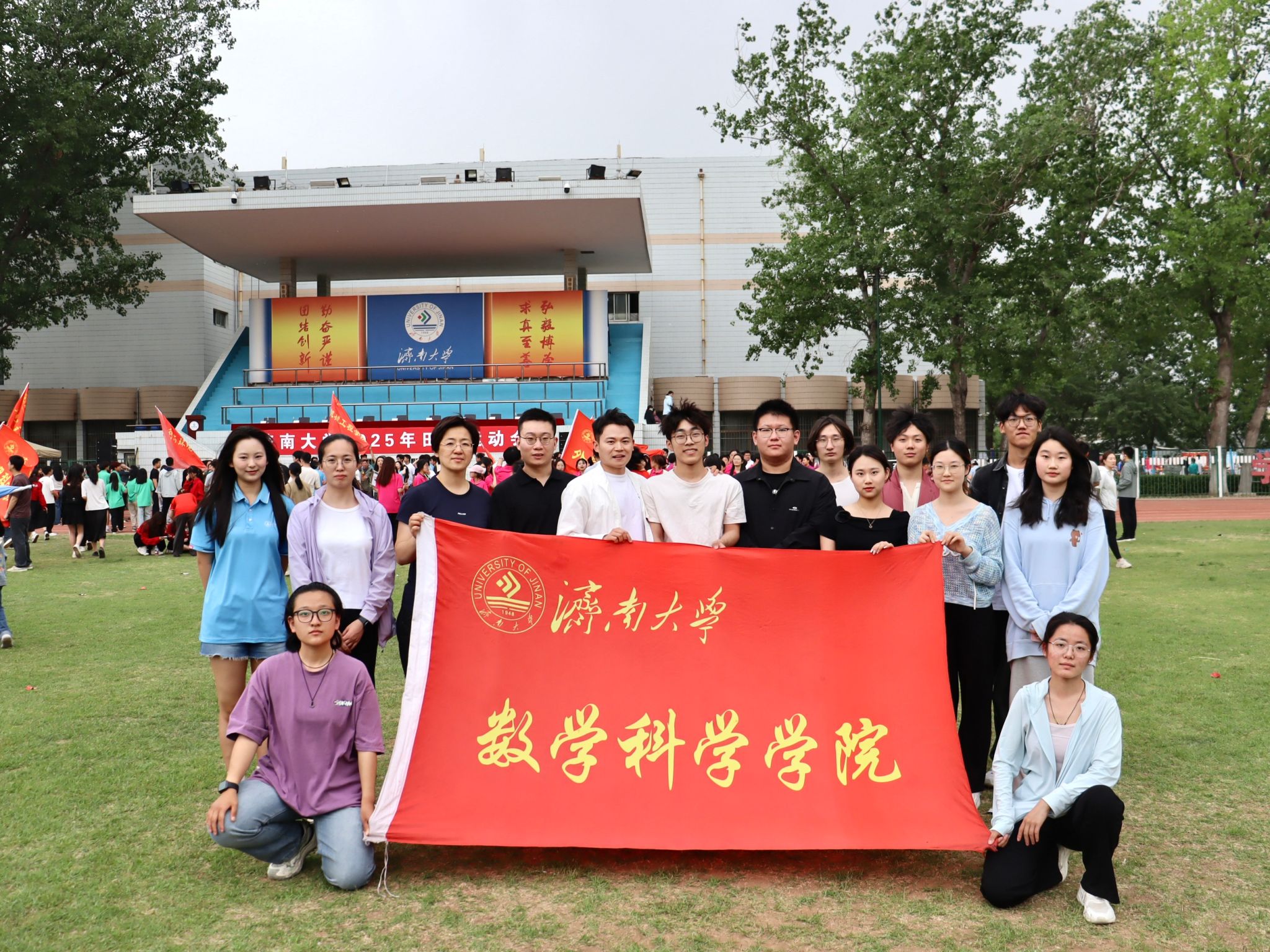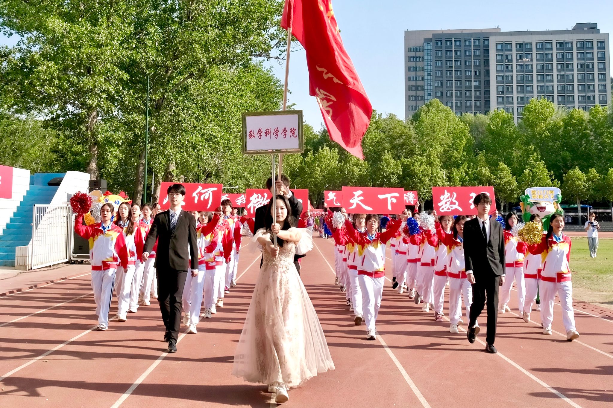 29日上午,运动会开幕式如期举行,太阳成集团tyc122cc师生方阵迎着四月暖阳,步履铿锵、朝气蓬勃。他们手持“数理天下,微分几何,看我数院,气势磅礴”的创意展板,将严谨的学科精神与蓬勃的运动活力完美融合,展现了数学人锐意进取的精神风貌。